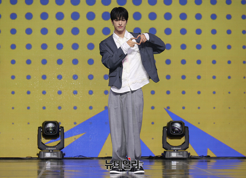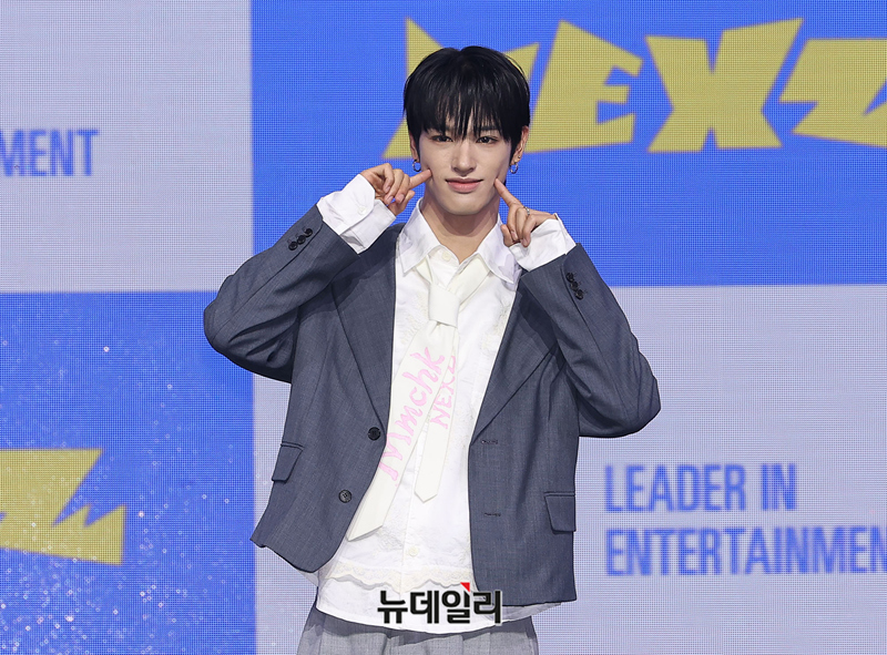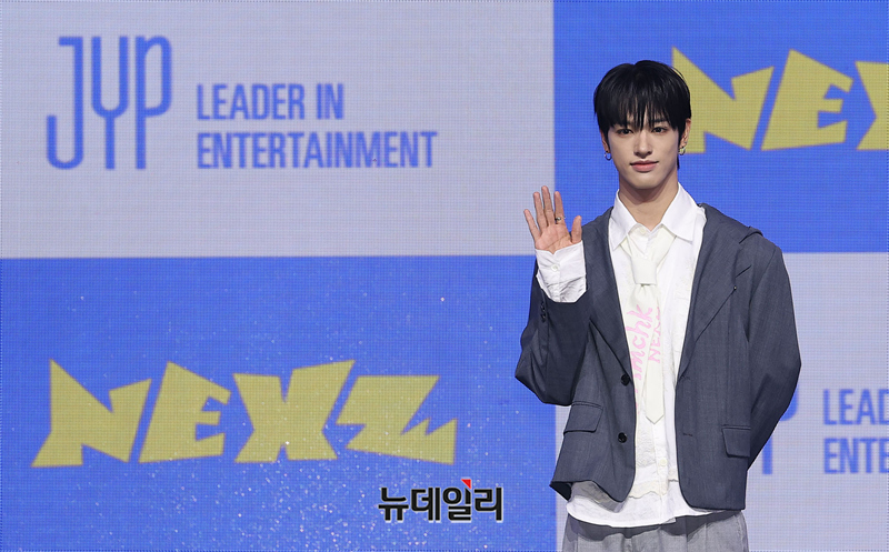 그룹 NEXZ가 세이타가 27일 오후 서울 용산구 블루스퀘어에서 열린 싱글 2집 'Mmchk(음츠크)' 쇼케이스에서 포즈를 취하고 있다 .