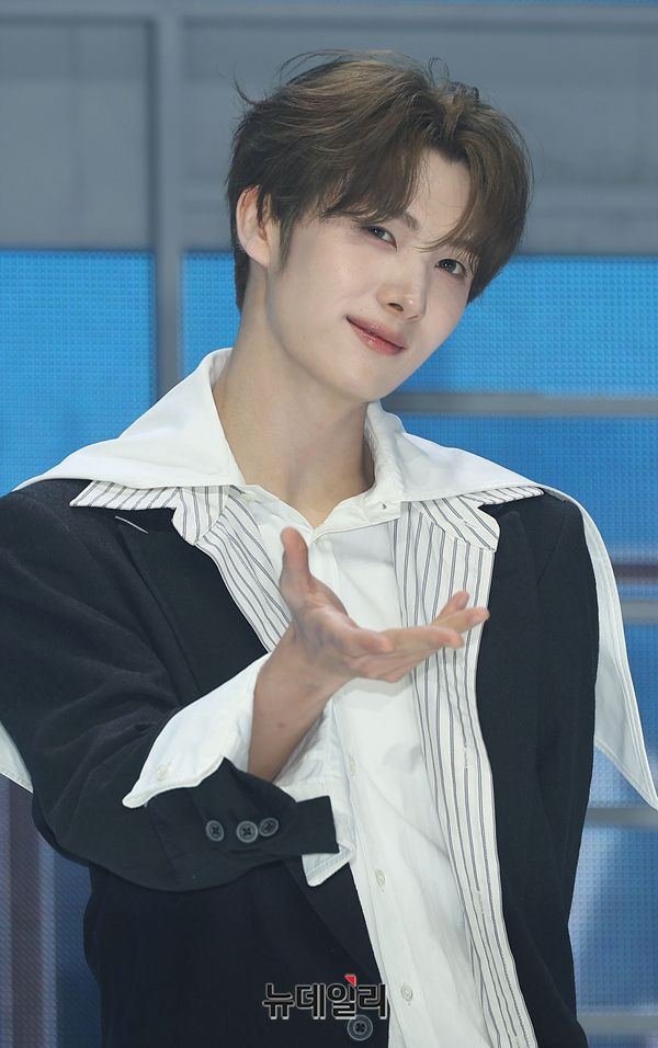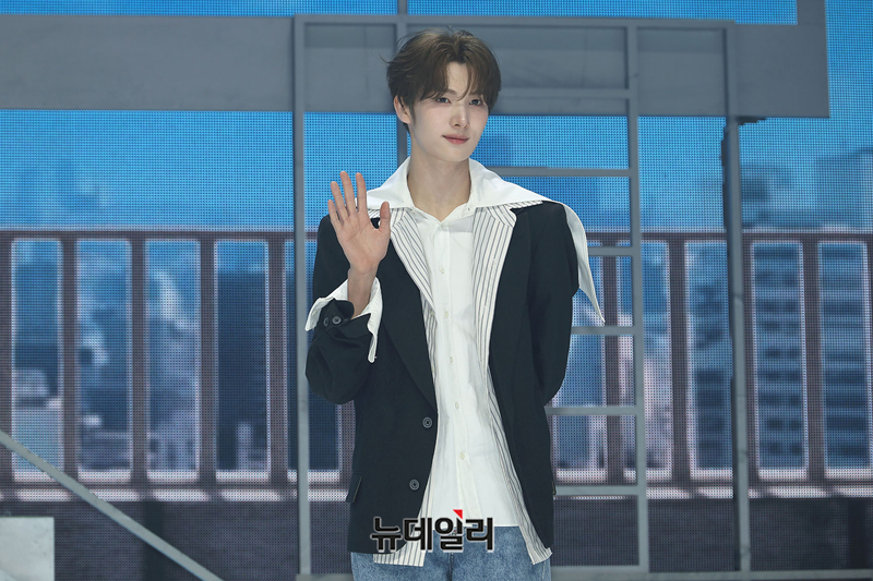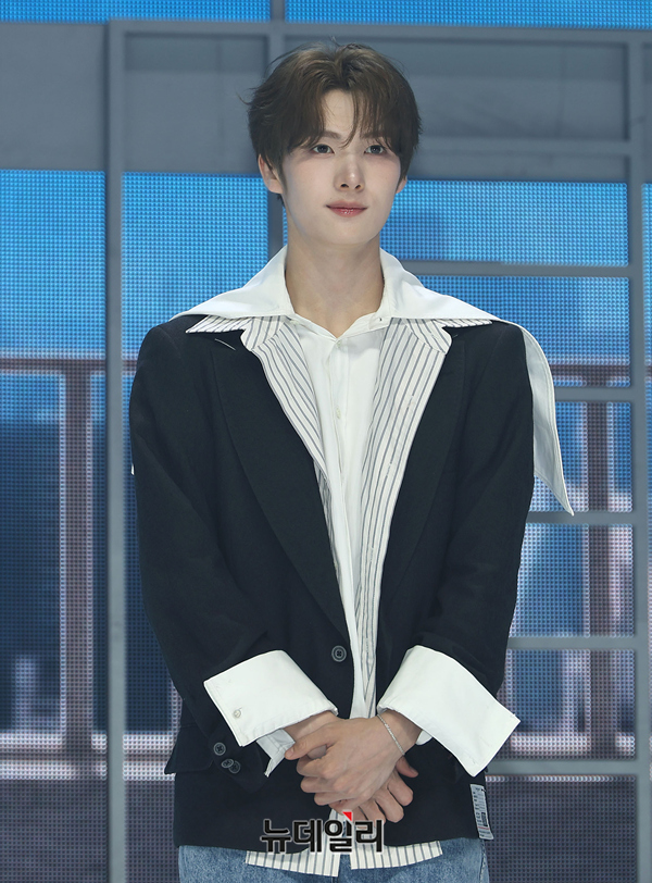 그룹 TWS(투어스) 영재가 27일 오후 서울 광진구 예스24 라이브홀에서 열린 미니 5집 'NO TRAGEDY(노 트래저디)' 쇼케이스에서 포즈를 취하고 있다.