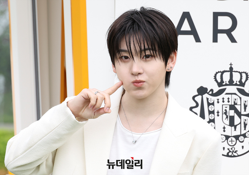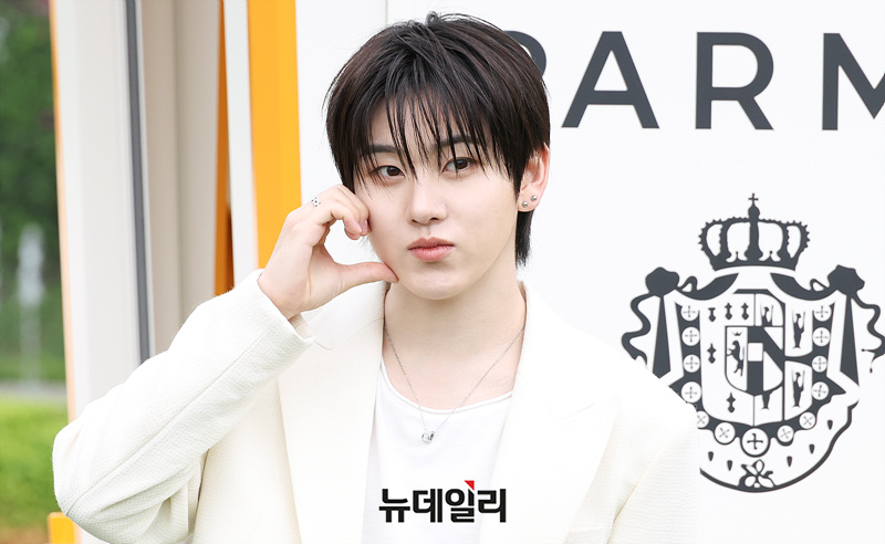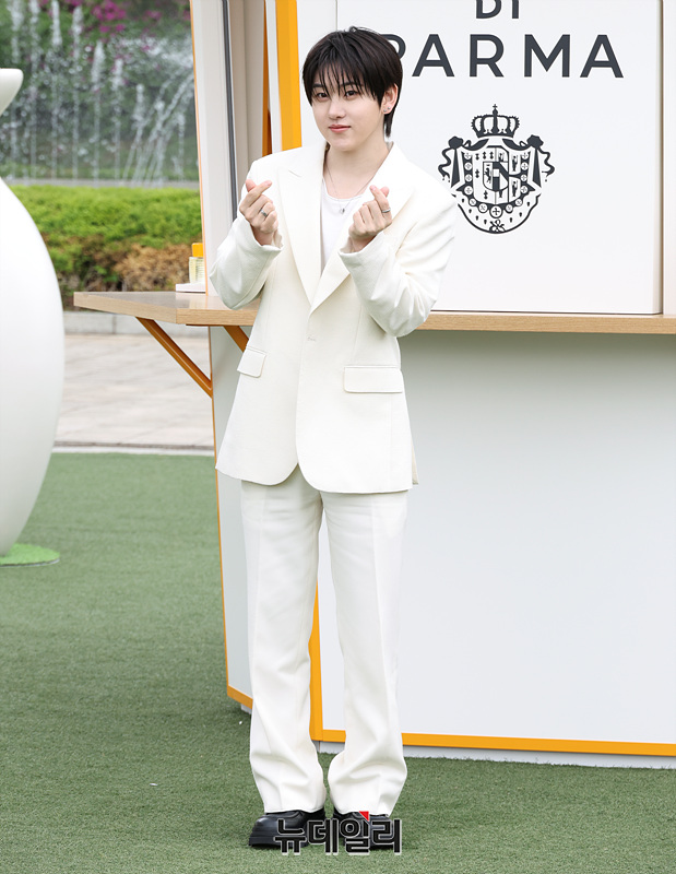 킥플립 계훈이 28일 오전 서울 서초구 예술의전당 음악광장에서 열린 아쿠아 디 파르마 팝업 스토어 오픈 기념 행사에서 포즈를 취하고 있다.