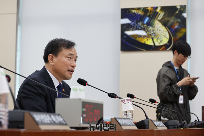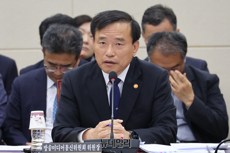 김종철 방송미디어통신위원장이 28일 국회에서 열린 과학기술정보방송통신위원회 전체회의에서 의원 질의에 답하고 있다.