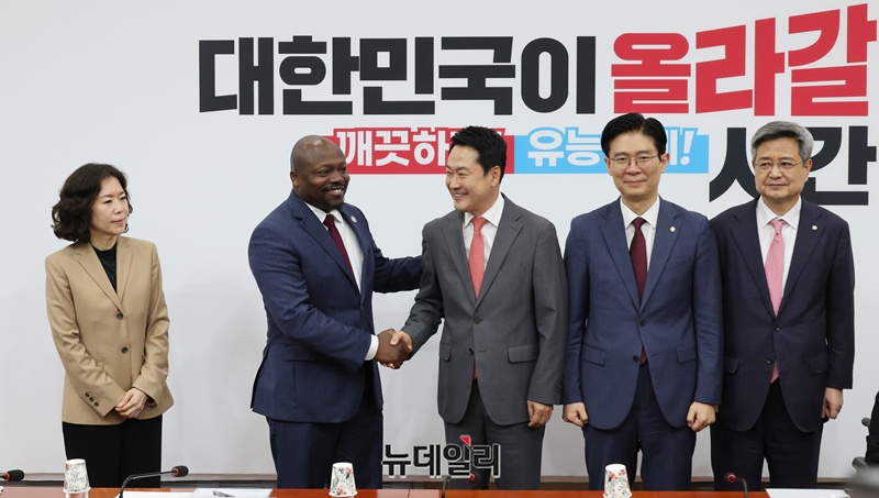 [포토] 윌슨화이트 구글 부사장과 악수 나누는 장동혁 대표