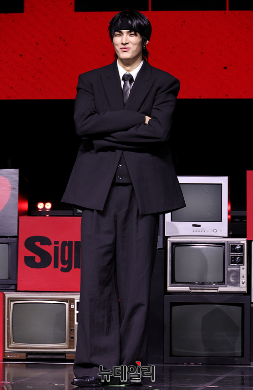 82메이저(82MAJOR) 윤예찬이 28일 오후 서울 서대문구 예스24 원더로크홀에서 열린 미니 5집 '필름(FEELM)' 발매 기념 쇼케이스에서 포즈를 취하고 있다.