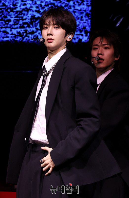 82메이저(82MAJOR) 윤예찬, 김도균, 남성모, 박석준, 황성빈, 조성일이 28일 오후 서울 서대문구 예스24 원더로크홀에서 열린 미니 5집 '필름(FEELM)' 발매 기념 쇼케이스에서 무대를 선보이고 있다.