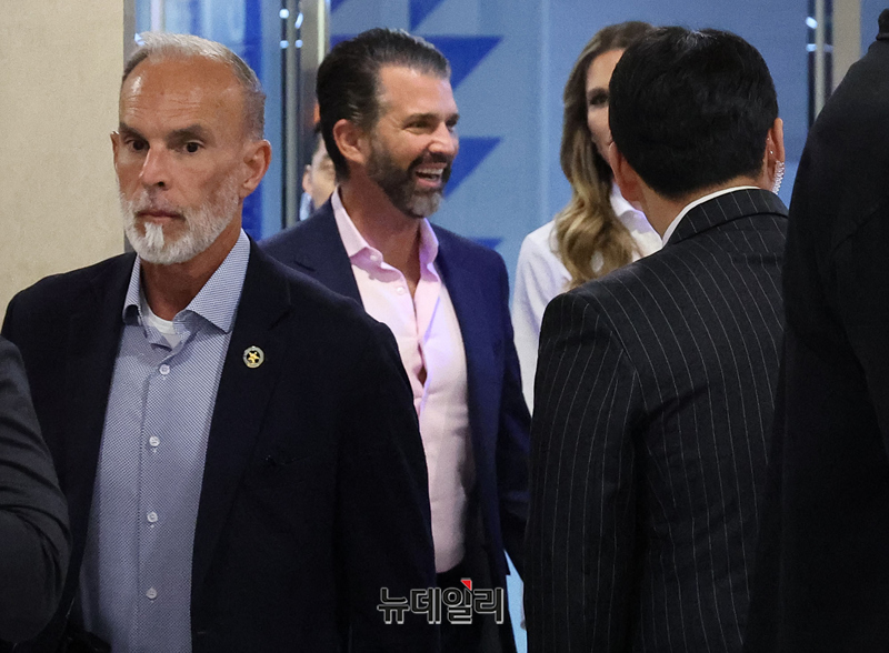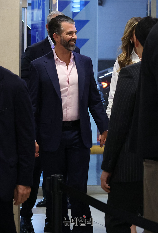 도널드 트럼프 미국 대통령의 장남 트럼프 주니어가 여자친구 베티나 앤더슨과 함께 29일 오후 서울 송파구 롯데콘서트홀에서 열린 정용진 신세계그룹 회장의 부인 한지희 씨의 데뷔 앨범 발매 콘서트에 참석하고 있다.
