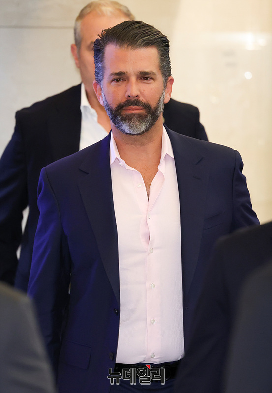 도널드 트럼프 미국 대통령의 장남 트럼프 주니어가 29일 오후 서울 송파구 롯데콘서트홀에서 열린 정용진 신세계그룹 회장의 부인 한지희 씨의 데뷔 앨범 발매 콘서트에 참석하고 있다.