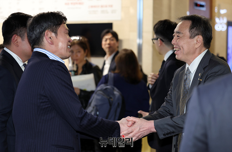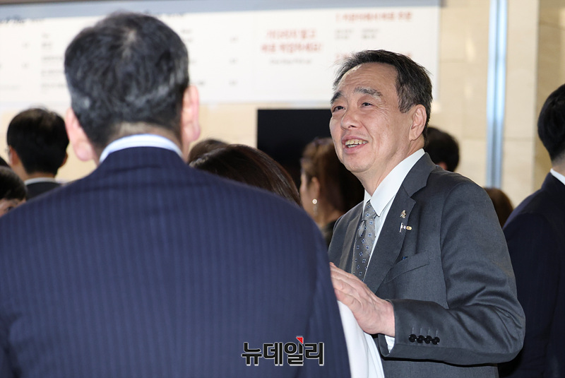 [포토] 정용진 회장과 인사나누는 미즈시마 고이치 주한일본대사