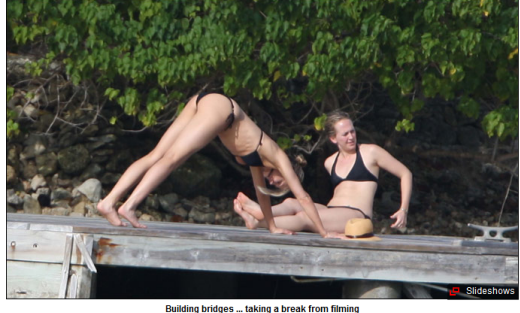 보도에 따르면 디아즈는 영화 '나잇 앤 데이(Knight and Day)' 촬영차 들른 장소에서 동성 친구 2명과 함께 일광욕을 즐겼는데 재미있는 점은 친구들이 누워서 휴식을 취하는 동안 디아즈는 한쪽 다리로 몸을 지탱하는 등 요가를 하는 모습을 보인 것.