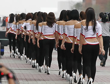 하지만 F1 코리아의 유명인사는 따로 있었다. 25일 인터넷 포털사이트에는 우승자 알론소 보다 레이싱걸들에게 관심이 쏟아지고 있는 것. 네티즌들은 8등신 몸매의 그녀들에게 환호하며 뒷모습부터 단체사진 등이 잇따라 화제가 되고 있다.
