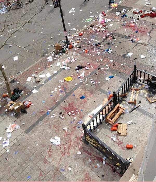 ▲ 보스턴 폭탄테러 현장. 곳곳이 피로 얼룩져 있다.
