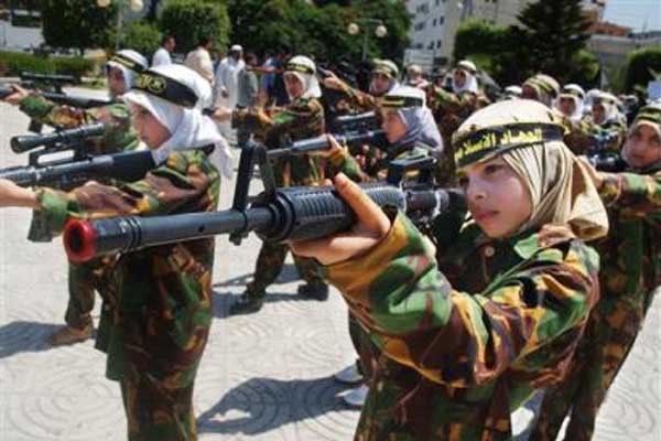 ▲ 어린이에게까지 '지하드(성전)'을 가르치는 이슬람 테러조직들. 김정은 패거리의 '주체사상'과 통하는 데가 많다.
