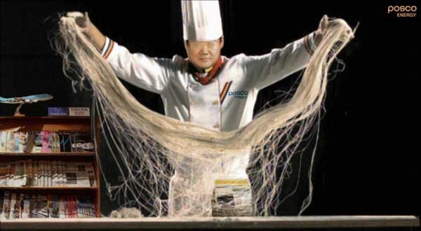 ▲ '기내식의 황제' 포스코 왕 상무가 '수타 라면'을 만든다는 패러디 사진.