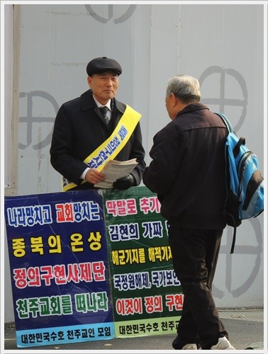 당신도 정의구현사제단 추종세력이냐고 물으니 대답은 않고 다른 데로 가라고 해서 소리만 쳤다.