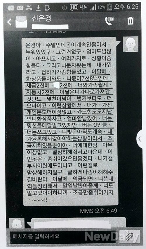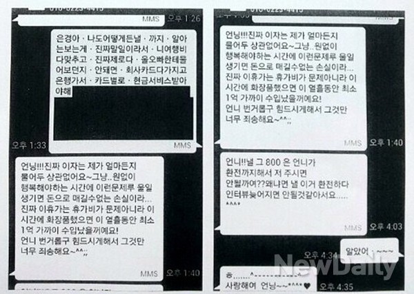 또 해당 문자에는 고 대표에게 800만원을 환전해서 자신에게 건네달라는 신은경의 요청도 들어 있었다.