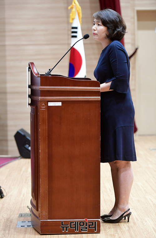 전희경 자유한국당 의원이 27일 오후 국회의원회관 대회의실에서 열린 '국가인권정책기본계획(NAP) 독소조항 반대, 국민기만 인권정책 비상대책위 출범식 및 토론회'에서 인사말을 하고 있다.