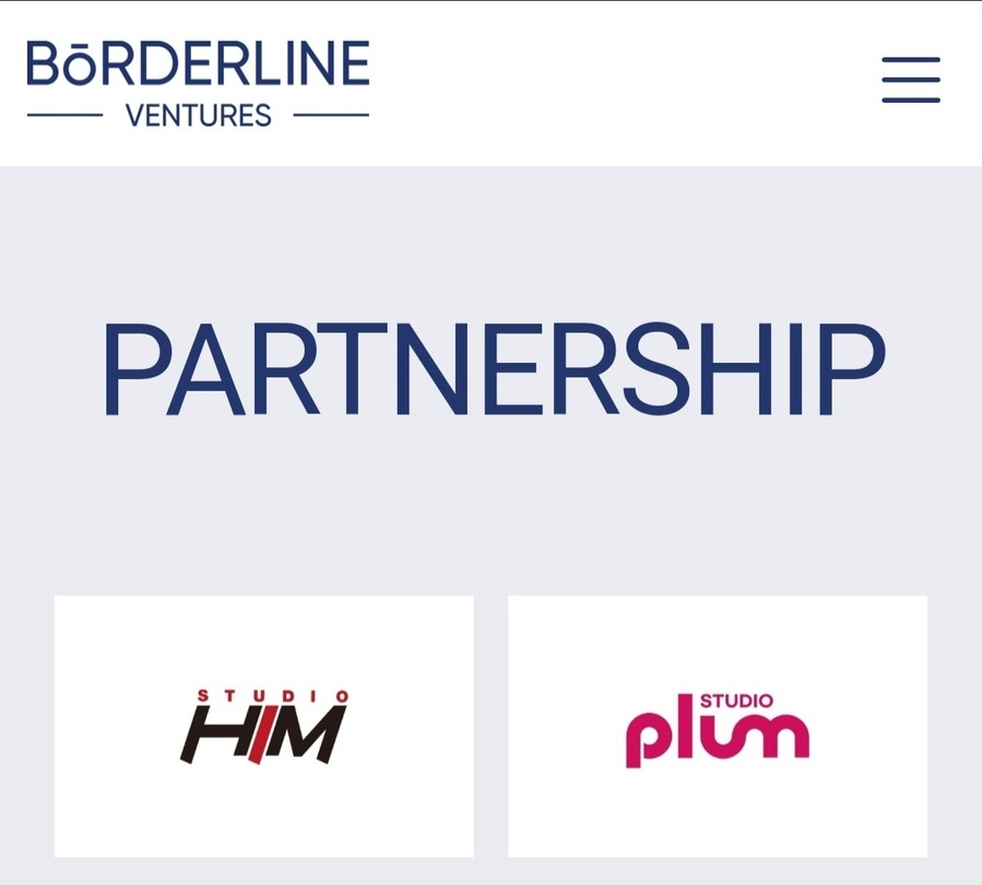 ▲ 보더라인벤처스와 스튜디오플럼의 파트너십 현황이 공개돼 있는 홈페이지ⓒ보더라인벤처스 홈페이지 갈무리