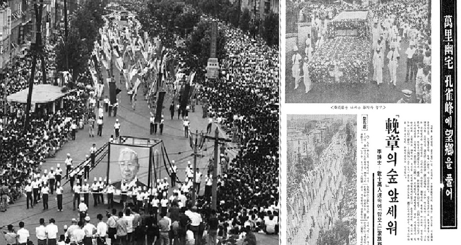 이화장에서 동작동 국립묘지까지 장장 15㎞ 서울 장안을 뒤덮은 수백만 인파가 이승만의 죽음이 무엇을 의미하는지를 통곡으로 웅변하고 있었다. 실로 국장보다 더 장엄한 가족장이다.